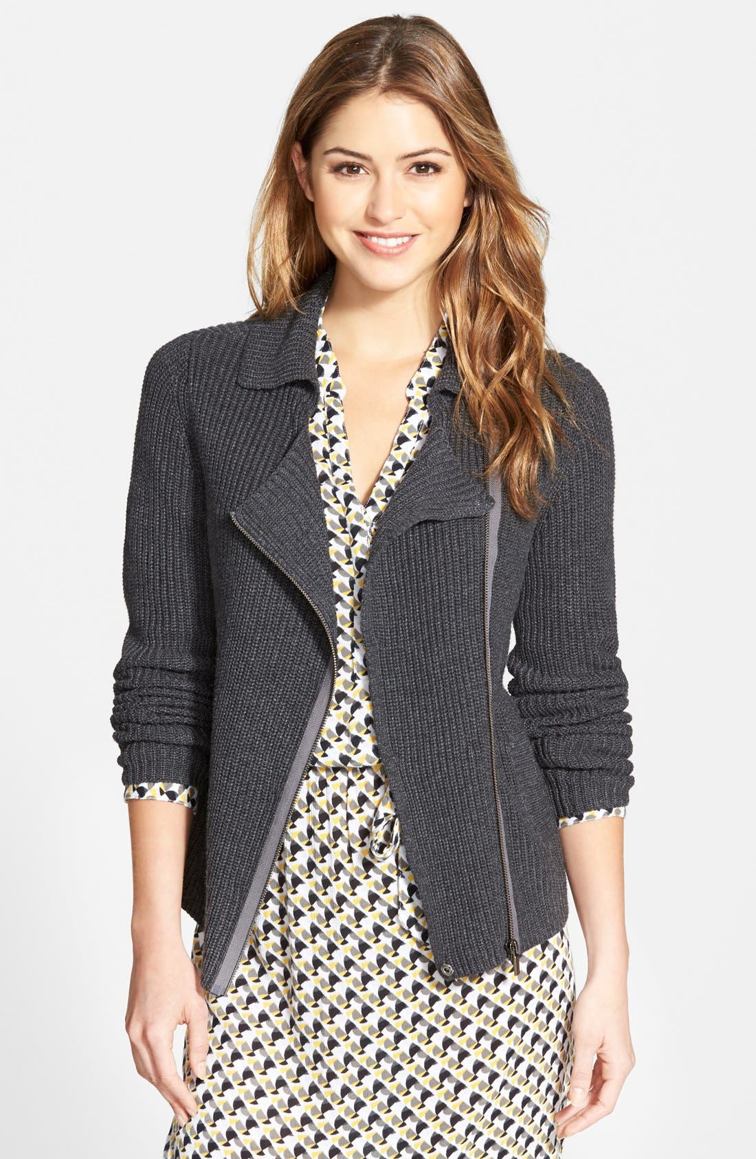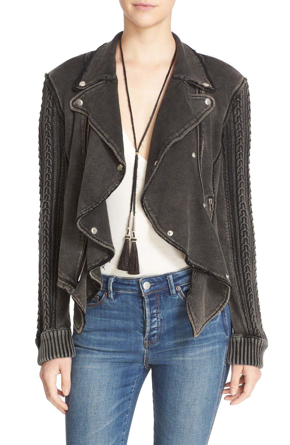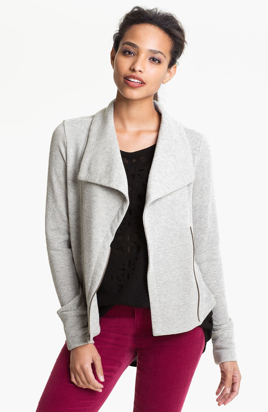 This reimagined knit moto jacket invites sporty style into every aspect of your week.